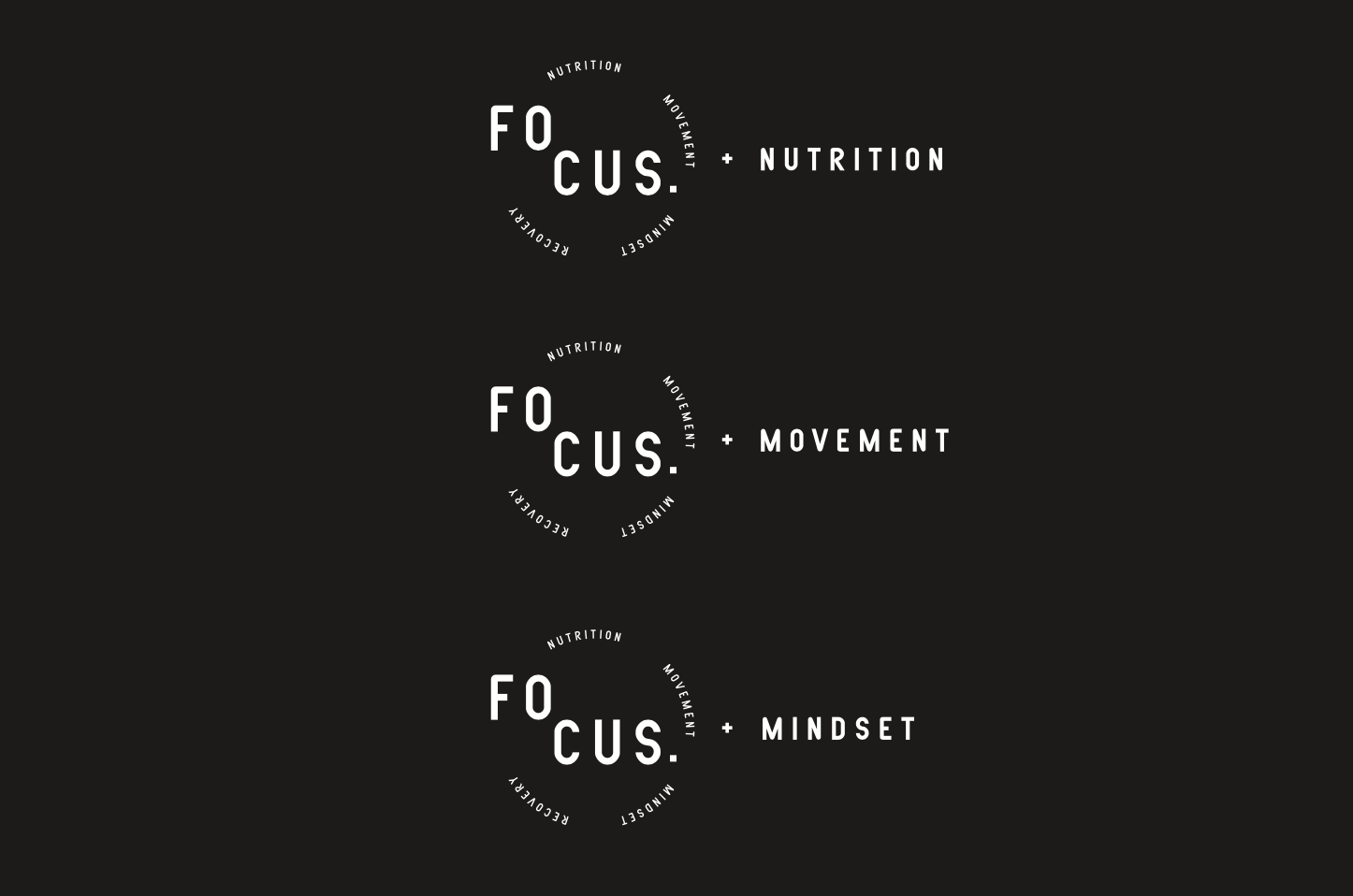 In 2020, Kristie reached out to me to rebrand her business logo and brand identity. She wanted Focus Wellness to represent a sleek, timeless brand which was to be simple and cool; and inviting. She wanted to more accurately represent the four key pillars of her business; nutrition, movement, mindset and recovery. The brief asked for holistic approach to health and this was captured in the rounded, circular design of her final logo.