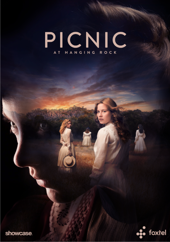 From these notes we developed concepts which focused on the girls, more than the ‘rock’ itself, to symbolise the female adolescent fire and desire to develop into independent women, in an era that was still oppressed by traditional Victorian views. A lot of the designs were executed in dark and moody tones, one concept in particular using the silhouette of Natalie Dormer’s profile to create shadows and an overwhelming feeling that somebody was always watching or that nature would take it’s own course. When collaborating with the marketing team, we found that marketing also had their own idea of Key Art, being a lighter, more sellable execution likened to more rich tones of the Australian sunset and the soft but piercing gaze of the three girls.